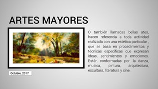 Se considera artes mayores a la pintura, escultura y a la arquitectura por ser las artes que más han tenido que ver en momentos clave de la historia de la humanidad. El término «arquitectura» proviene del griego cuyo significado es 'jefe', 'quien tiene el mando'), y τεκτων (tekton, es decir, 'constructor' o 'carpintero'). Espacio dedicado a todas las artes, no solamente las mayores. El concepto de artes mayores se utiliza en oposición al de artes menores o aplicadas, para considerar a éstas como artesanías y a aquellas como artes liberales, a las primeras como forma de expresión de la belleza y a las segundas como forma de ejecución de objetos en los que prima la utilidad, todo ello en el contexto de la valoración del trabajo intelectual y minusvaloración del. Se considera artes mayores a la pintura, escultura y a la arquitectura por ser las artes que más han tenido que ver en momentos clave de la historia de la humanidad.. Espacio dedicado a todas las artes, no solamente las mayores.